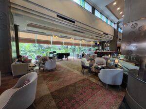 KLIA (Terminal1) のLand Sideにある。KLIAから出発時に空港に早く着きすぎて、チェックインカウンターが開くまで時間がある時や、到着時に電車やバスまで時間がある時に便利だ。中には到着時に、ここで出た食事を持参したタッパー容器に入れて持ち帰って、家で昼食にする猛者までいると聞く。そんな事をするから、クレジットカードの特典として段々制限が増えて来るのだろうか。