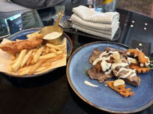 ホテルのロビーに入ったらレセプション向かいのカフェがラウンジ。Priority Passでは、1人料理2品と飲み物2品が頼める。