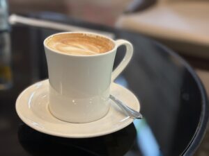 特筆すべきは電子レンジがある事。フレッシュミルクが冷蔵ケースの中にあるので、僕の好きな飲み物が作れる。ミルクをカップに半分くらい入れて、電子レンジで温める。上からリストレットをダブルで落とせば完璧のミルクコーヒーだ。