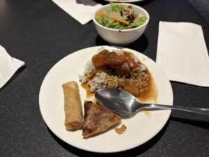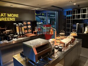 食事は種類も質もまあ普通のラウンジだ。とても広いので週末も一杯になる事は無さそうだ。