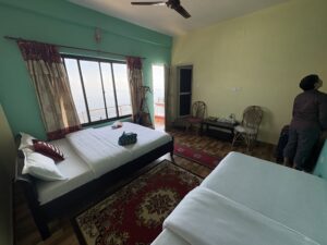 午後からサランコットのHimalayan Crown Lodgeに移動。宿の奥さんに12時にタクシーを呼んでもらう。