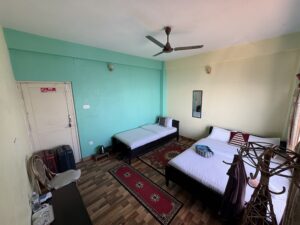 今晩の宿、Himalayan Crown Lodge は道路から階段を登らないといけない。タクシーの運転手が「ここで待っているので、先にホテルに行ってポーターに荷物運びを頼んで。」と言われた。ホテルのオッチャンに下にタクシーが待ってると言うだけで荷物を取りに行ってくれる。
