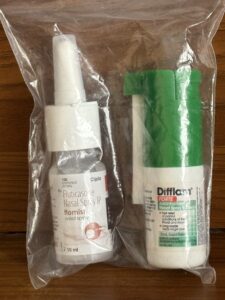 左がさっき買った鼻スプレー、右がいつも持っているムチャクチャよく効く喉スプレー。