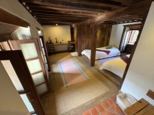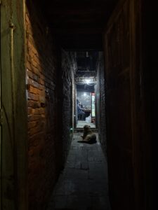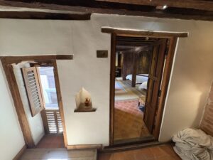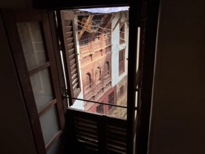 前回は屋根裏的な部屋だったが、今回はもっとネパールの感じがして落ち着く感じの部屋だ。ただし暖房が無いので、この隙間風だらけの建物だと結構寒いだろう。午後1時過ぎでジーンズを履いた脚が冷える感じだ。