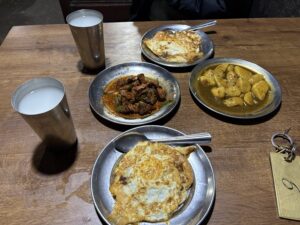 いくらかわからないし、数字を聞いても聞き取れないことが結構あるので、1000ルピー札を出した。お釣りをドサっと渡されたが確認せずに財布へ。部屋に戻って確認したら490ルピーあった。つまりアンだけ食べて飲んで510ルピーだ!570円くらいか。安っ!