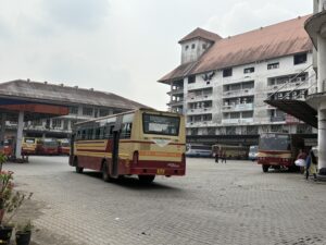 ホテルをチェックアウトしてからUberを呼んで、教えてもらったAngamaly KSRTC(ケララ州バス公社みたいな意味)のバスターミナルへ出かける。大きなバスターミナルだ。Uberの料金は189.96ルピー。