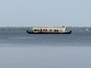 湖をハウスボートがゆっくりと通り過ぎて行く。