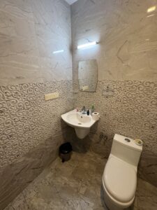 バスルームもだだっ広い。シャワーヘッドから便器までに距離があるので、それほど濡れる訳ではないが、ワイパーは役にたつ。