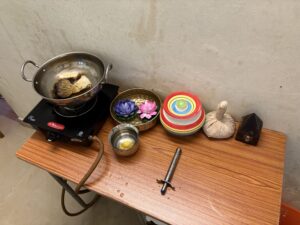 夜中に停電になってエアコンとファンが止まったが、割と寝られた。不思議なことにコンセントにさしてある充電器や天井のライトはついた。朝になって配電盤を見てみると、漏電遮断機が落ちていた。じゃあなぜ一部電気が来ているのか?朝食の準備に来ていたおばあちゃんが見せてくれた。小型冷蔵庫の様な箱のバッテリーがあった。