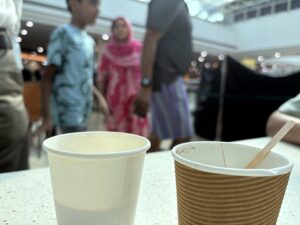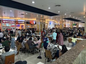 3 階からのんびりウインドーショッピングしながら2階の半分を回ったところで疲れた。今日は既に6000歩歩いた。またフードコートに戻ってマサラチャイをすすりながら暇つぶし。
