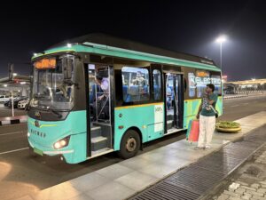 20:30発車。2025年1月にきた時は、空港で降車時に一悶着あったので、ちょっと心配だ。