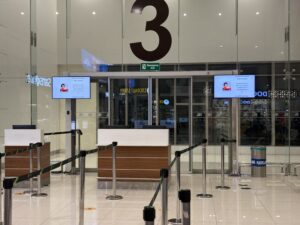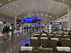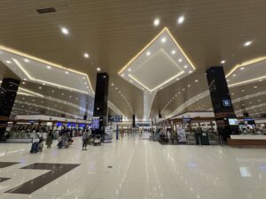 写真には写っていないが、左の方に上階のデパーチャーホール前に登る長いエスカレーターの乗り口がある。